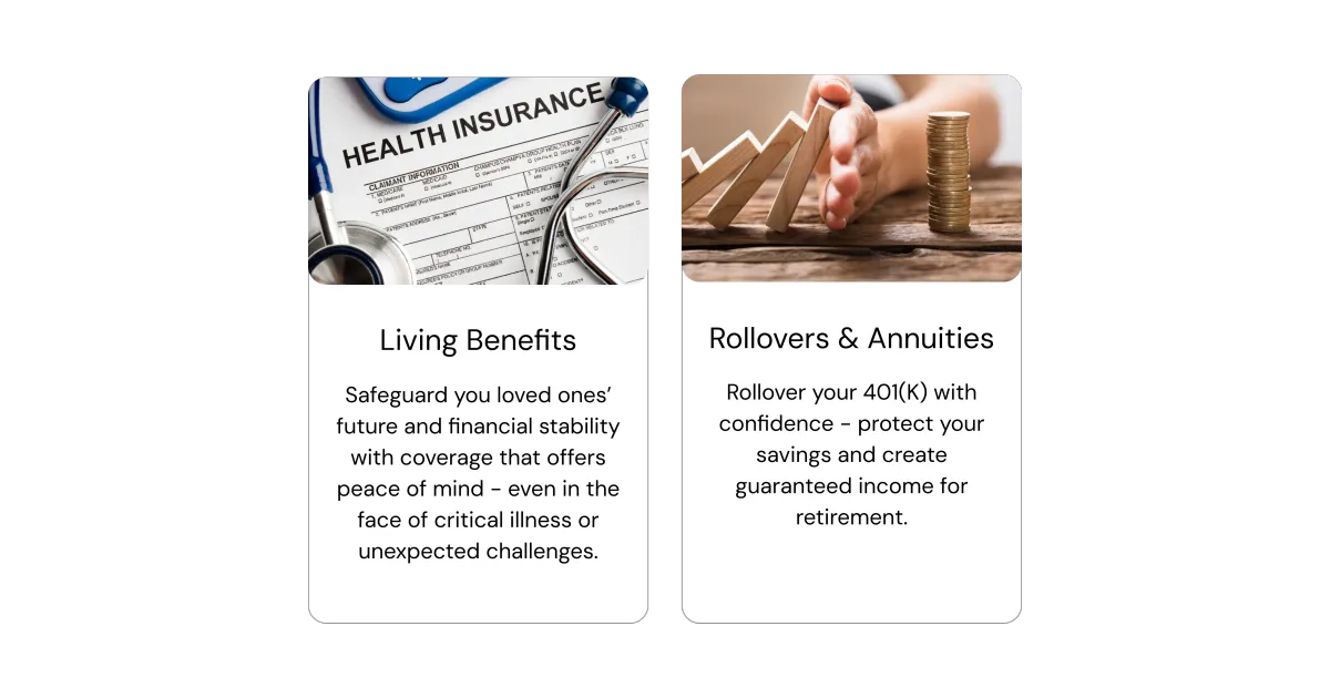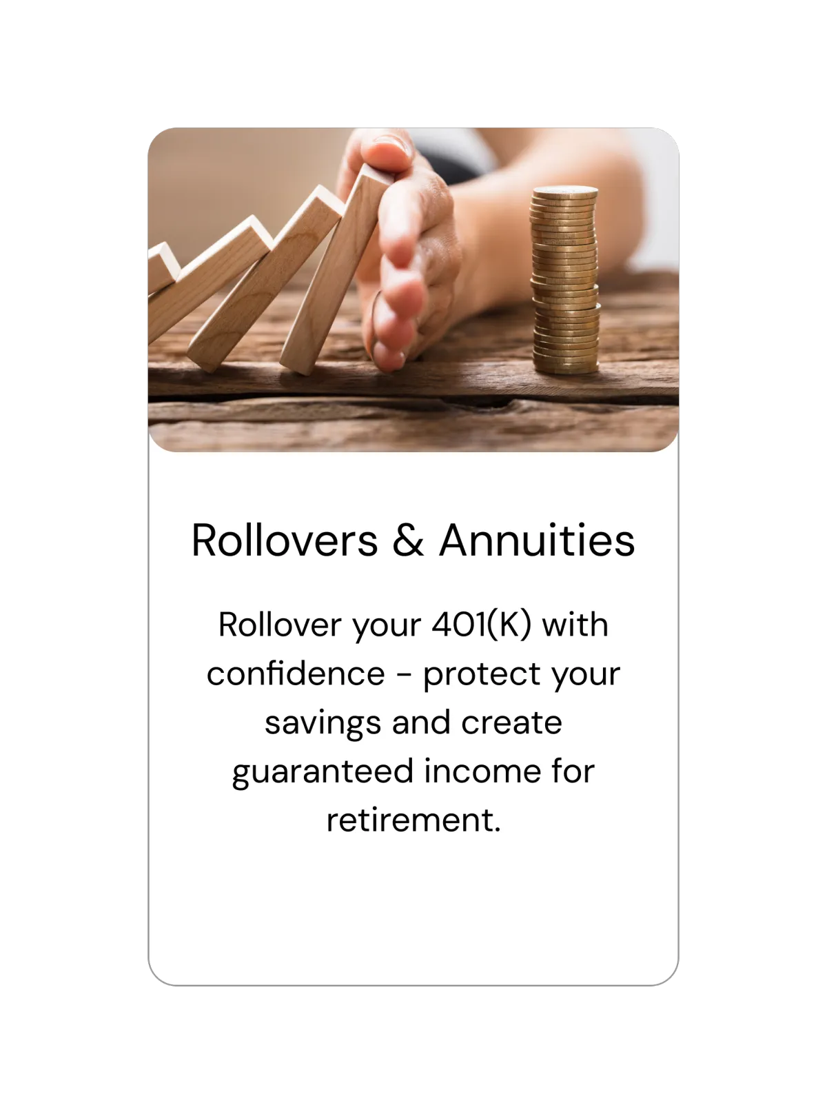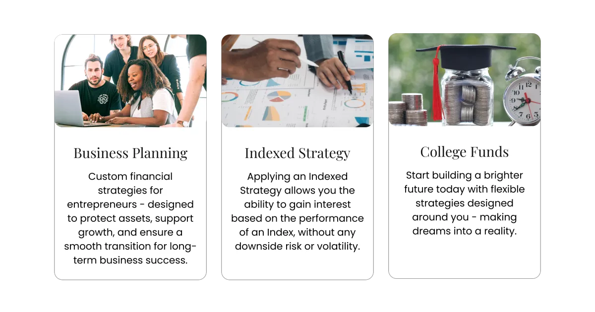 Most traditional advisors stick to conventional tools like 401(k)s, IRAs, and mutual funds. We focus on the side of finance that eliminates risks, fees and taxes — using strategies the top 1% have used for decades — and make them accessible to everyday families.